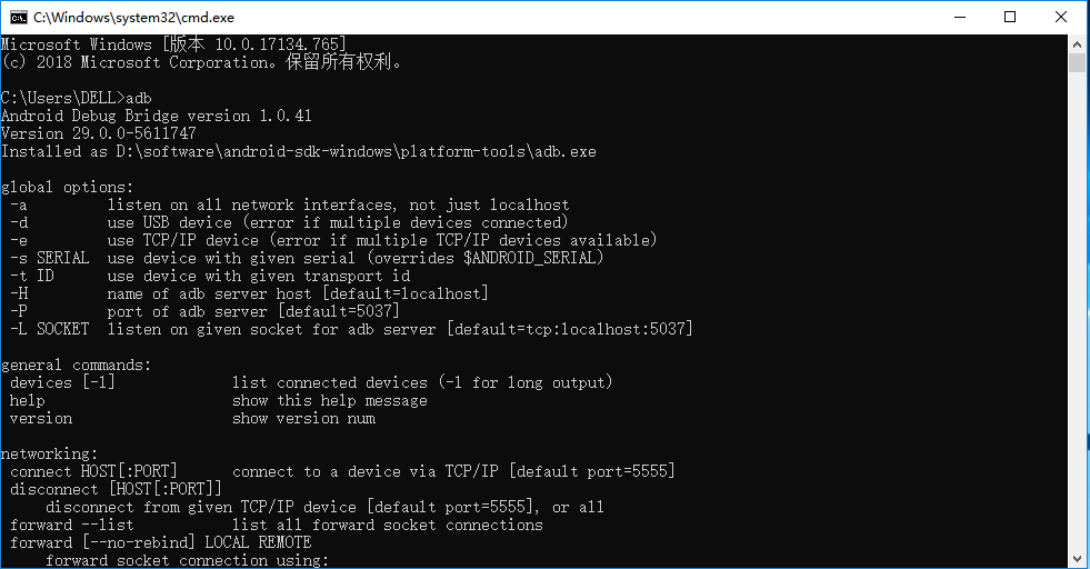 1.因为adb是在D:\software\android-sdk-windows\platform-tools这个目录下的,所以上面添加了环境变量后,可以直接在cmd里面运行了。