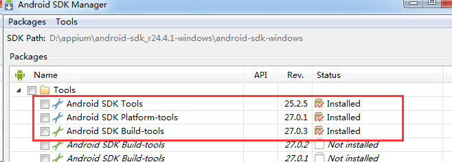 3、勾选你要下载的API版本和对应的android版本,后面模拟器会用到(不下载用其它模拟器也行,或者真机),然后坐等下载。安装Tools下的Android SDK Platform-tools和Android SDK Build-tools,Android SDK Tools可以选择是否更新,建议直接更新。镜像:随便选个版本也可以选择多个版本安装,我喜欢直接连接真机进行,由于镜像比较大,所以喜欢真机的朋友们可以不下载镜像,GoogleFQ安装:Extras文件夹下所有的全部安装。