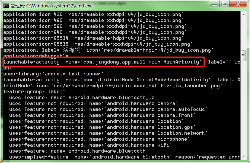 4. 如下图,继续下拉cmd,就可以看到launchable-activity的值了。