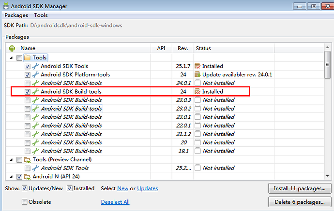 1.查看android sdk--build-tools目录下是否有aapt。