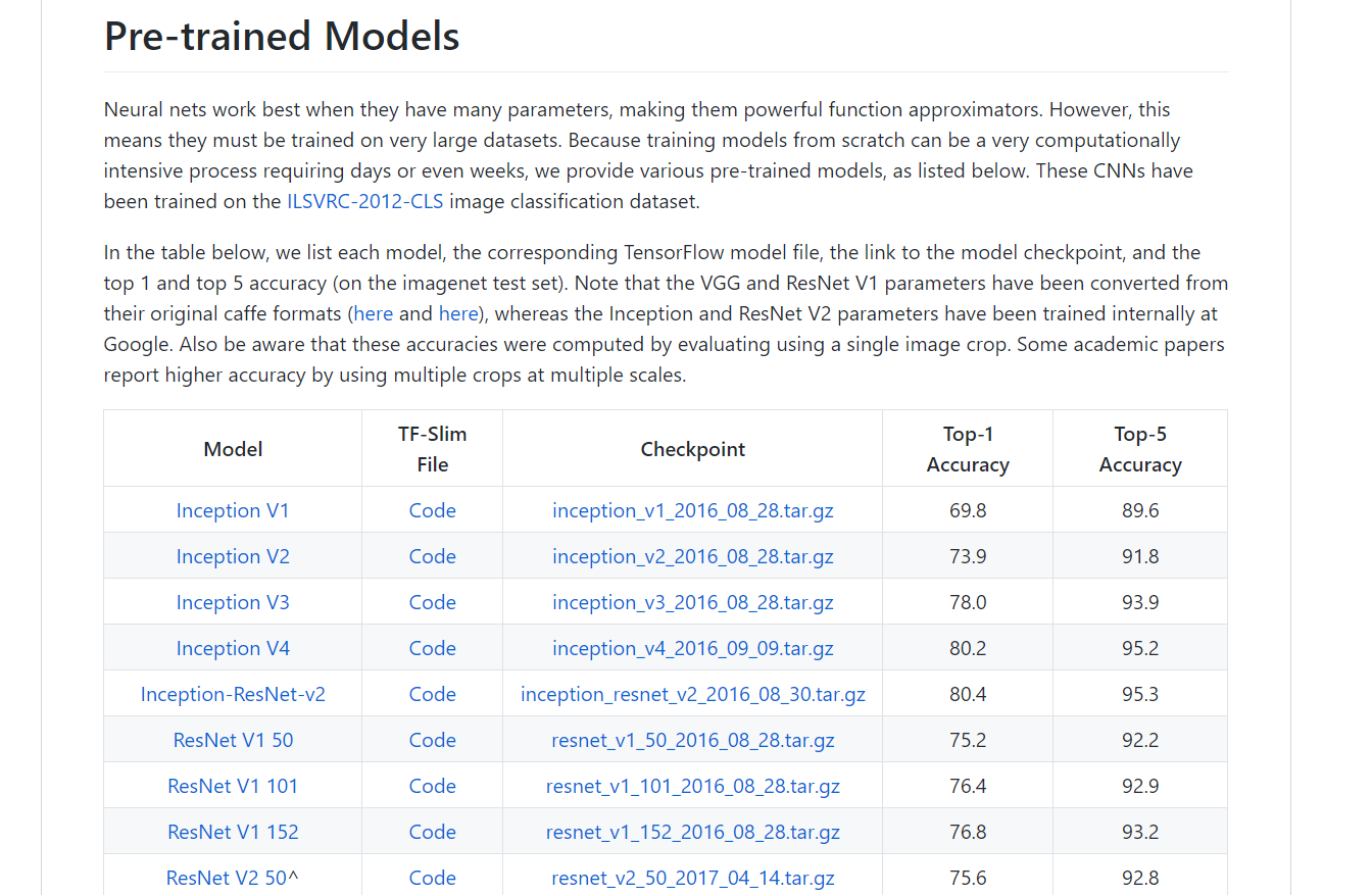 tensorflow官方预训练模型下载链接:
