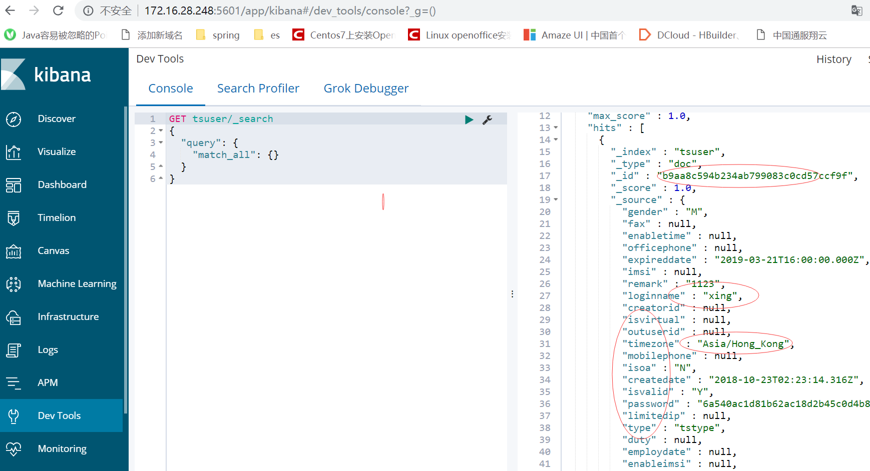 查看 自己业务oracle 库 用户表的数据 是否同步到 elastic
