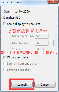 5、选中上面创建成功的模拟器,点 start 按钮,然后点 Launch 按钮就能启动了