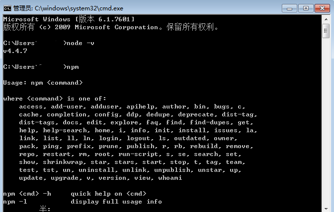 3.出现如上图信息,表示node.js安装成功。npm是一个node包管理和分发工具,有了npm,