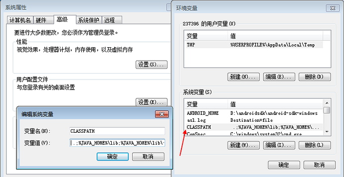 4.新建系统变量:CLASSPATH变量值.;%JAVA_HOME%\lib;%JAVA_HOME%\lib\tools.jar;(注意变量值前面有个点.)