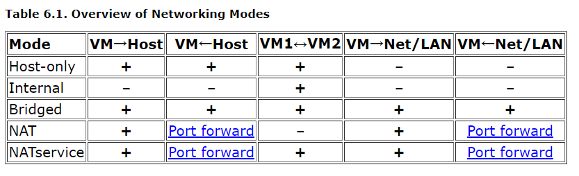 virtualbox 各网络连接方式的访问性如上图所示