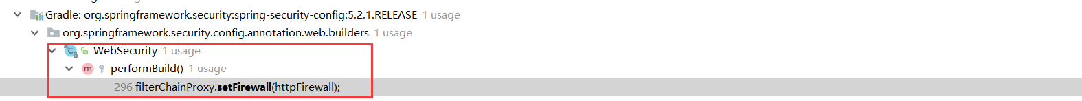 springsecutiry既然默认禁止 又提供了消除黑名单方法 ,那说明肯定有能配置的地方。我们使用idea全局搜索下,是否有地方使用了这个setFirewall方法,果然就搜索到了