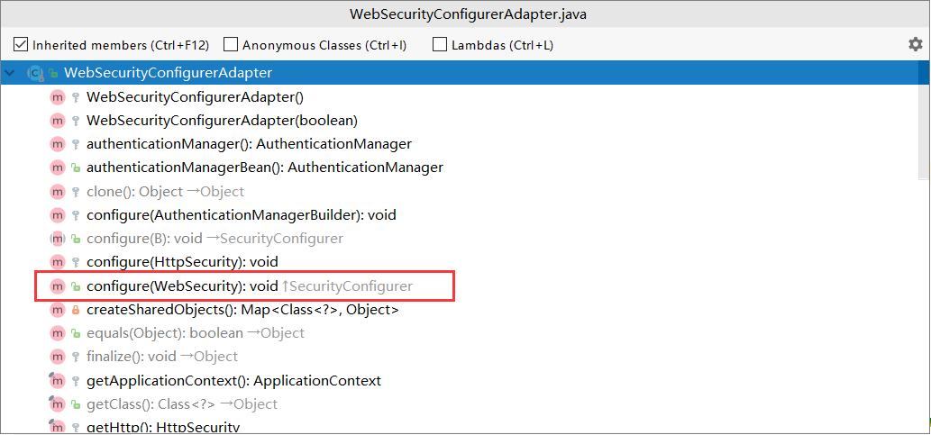 果然在里面找到了可以配置webSecurity的方法 ,所以我们就直接继承这个类 然后重写这个方法