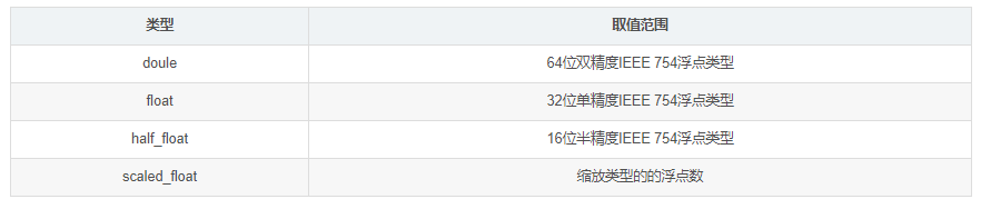 其中scaled_float,比如价格只需要精确到分,price为57.34的字段缩放因子为100,存起来就是5734