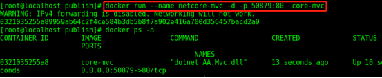 ocker run --name netcore-mvc -d -p 50879:80 core-mvc