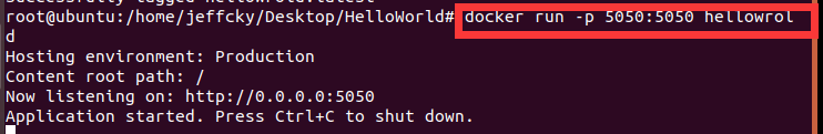 镜像已构建完毕,接下来则是创建并启动容器运行程序,如下:
