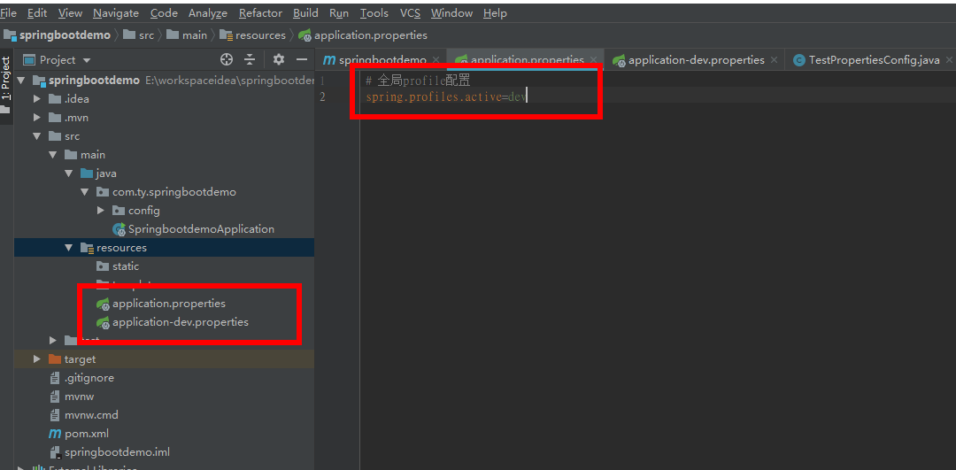 通常企业级应用都会区分开发环境、测试环境以及生产环境等等。spring提供了全局profile配置的方式,使得在不同环境下使用不同的applicaiton.properties,走不同的配置。