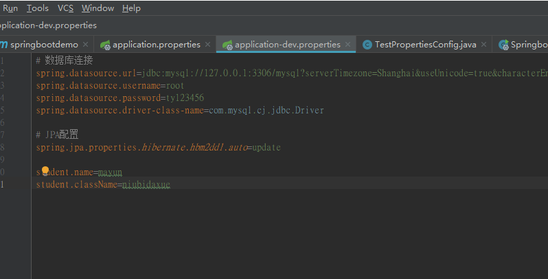 这样就是将当前项目运行模式调整为test,从而找到不同的application-xxx.properties文件。
