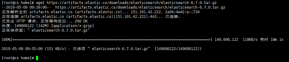 [root@cs home]# wget https://artifacts.elastic.co/downloads/elasticsearch/elasticsearch-6.7.0.tar.gz