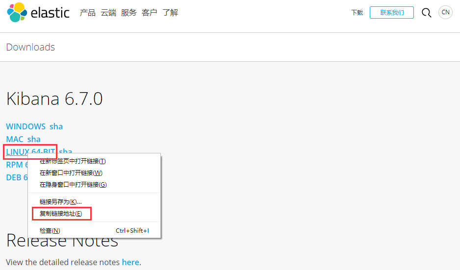 在elastic官网的elasticsearch下载页面,复制tar包链接: