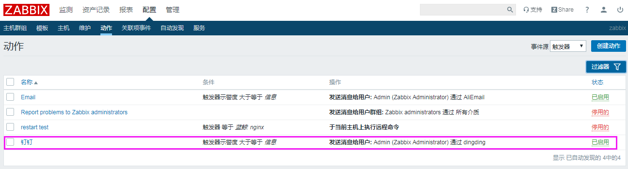 注:上面已经说了, zabbix已经搭建好了吧, 那么现在就来配置告警吧。