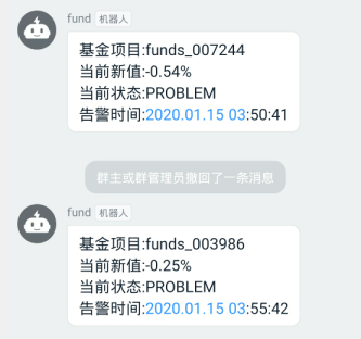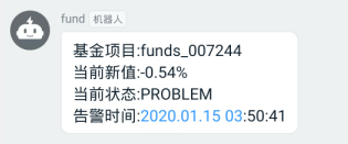 fund_dict.sh与fund_dict2.sh基本相同, 不过就是后面筛选的参数不一样,自动获取今天的时间和昨天的时间(以今天的为标准), 当今天的基金净值为更新的时候拿到的参数是空的, 这个时间会进入判断, 如果拿到的参数为空,那就是说今天的相关基金净值还没有更新, 那么这个时候就取昨天的为准, 一旦发现更新, 就推送到监控上面去触发, 然后提醒, 告诉自己今天的基金是涨还是跌。