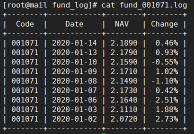 table.field_names = ['Code', 'Date', 'NAV', 'Change']