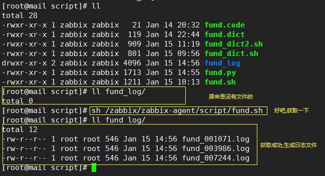 drwxr-xr-x 2 zabbix zabbix 4096 Jan 15 11:50 fund_log 日志目录