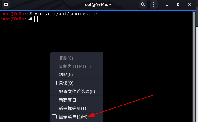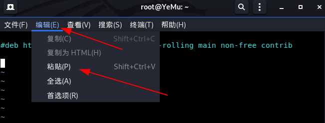 复制之后,来到终端!点击上面的编辑,点击粘贴!