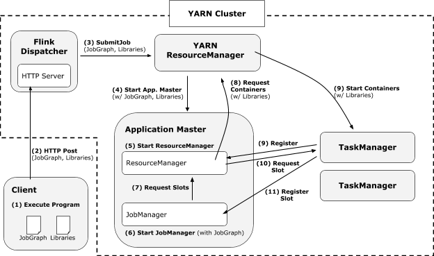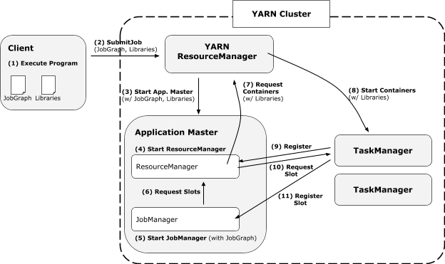 - The client directly starts the Job in YARN, rather than bootstrapping a cluster and after that submitting the job to that cluster. The client can hence disconnect immediately after the job was submitted