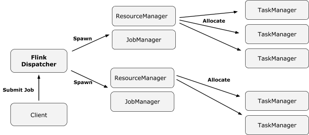 In some setups, the dispatcher is optional (YARN) or not applicable (Kubernetes).