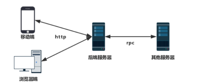 在后端开发过程中,后端服务不一定部署在一台服务器上,所以我们需要一种技术可以实现后端调用其他后端的服务,这种调用被称为RPC(远程过程调用),如下图所示: