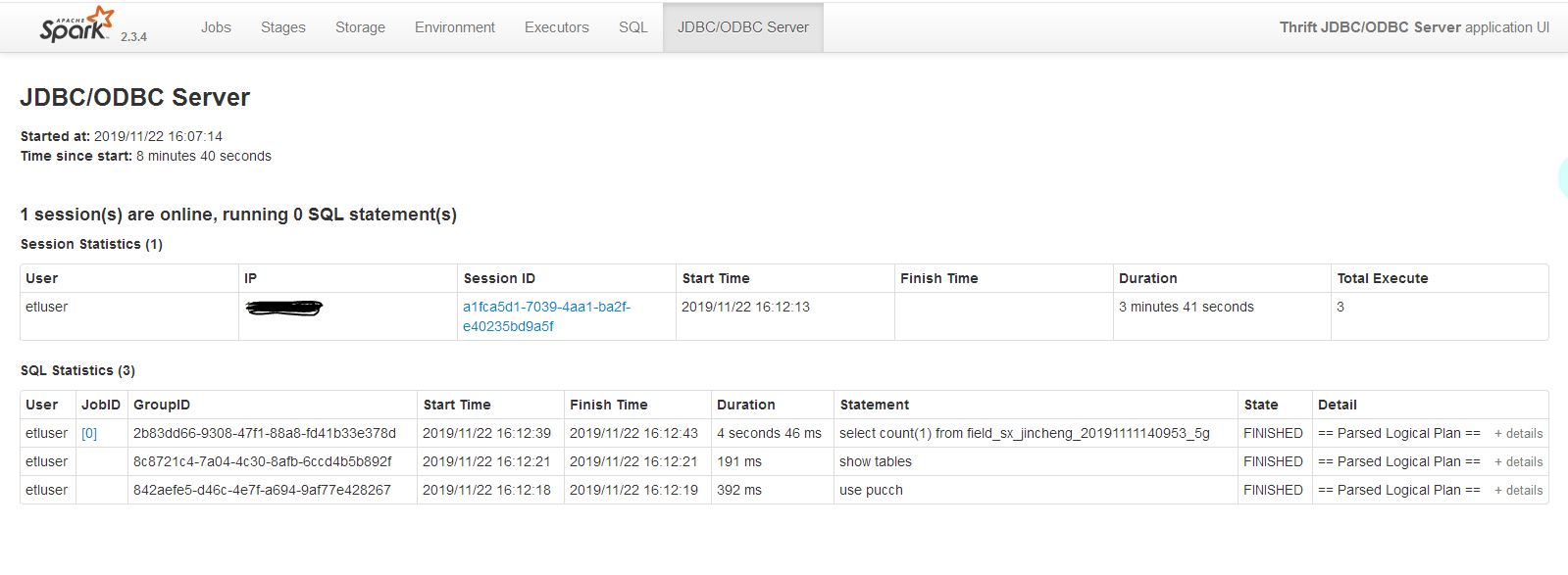19/11/22 16:07:09 INFO JettyUtils: Adding filter org.apache.hadoop.yarn.server.webproxy.amfilter.AmIpFilter to /SQL/execution.