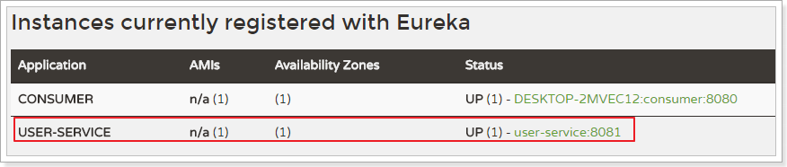 我们需要用Zuul来代理user-service服务,先看一下控制面板中的服务状态:
