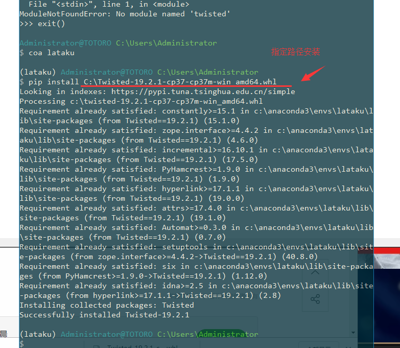 ERROR: Command "'c:\anaconda3\python.exe' -u -c 'import setuptools, tokenize;__file__='"'"'C:\\Users\\ADMINI~1\\AppData\\Local\\Temp\\1\\pip-install-mfhmq9ut\\twisted\\setup.py'"'"';f=getattr(tokenize, '"'"'open'"'"', open)(__file__);code=f.read().replace('"'"'\r\n'"'"', '"'"'\n'"'"');f.close();exec(compile(code, __file__, '"'"'exec'"'"'))' install --record 'C:\Users\ADMINI~1\AppData\Local\Temp\1\pip-record-ycs7v663\install-record.txt' --single-version-externally-managed --compile" failed with error code 1 in C:\Users\ADMINI~1\AppData\Local\Temp\1\pip-install-mfhmq9ut\twisted\