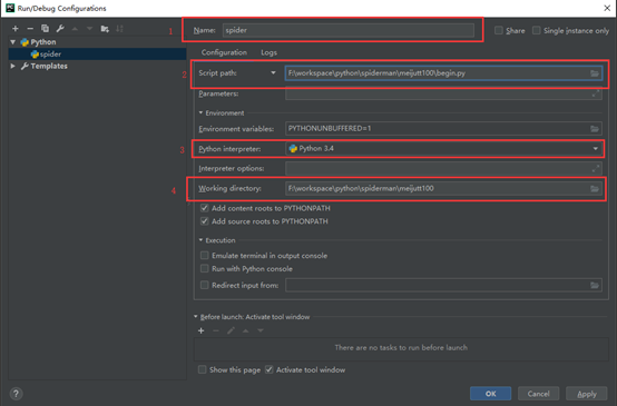 第二步:选择启动脚本,就是刚刚创建的begin.py,