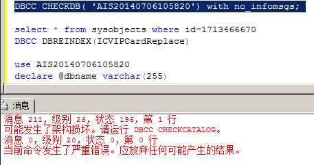 我怎么确定故障表?当然是先遍历sys.tables中的用户表,然后把所有数据insert into 到另外一个新建的库。然后就发现某些表在select * into from table...的时候报错。