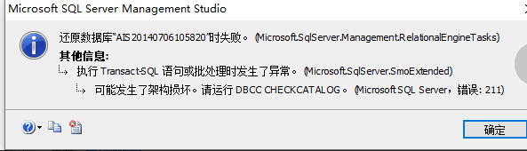 【1.2】按照指示运行了DBCC CHECKCATALOG 命令后报错如下