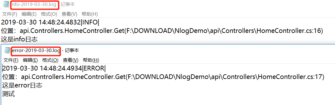 NLogHelper.Error("这是error日志",new Exception("测试"));