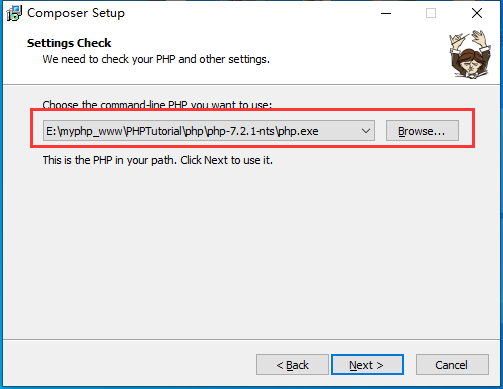2)、安装composer-setup.exe,选择对应php7.1+以上exe文件