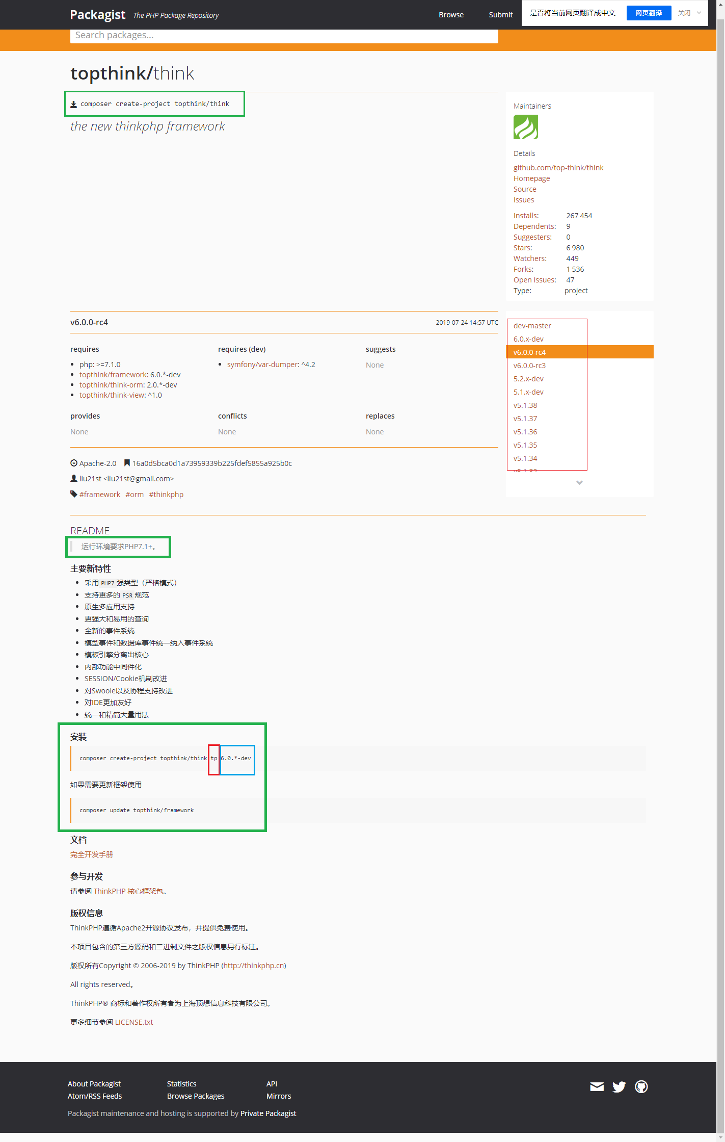 1)、打开composer官网安装包列表,搜索框输入thothink,选择第一个进入