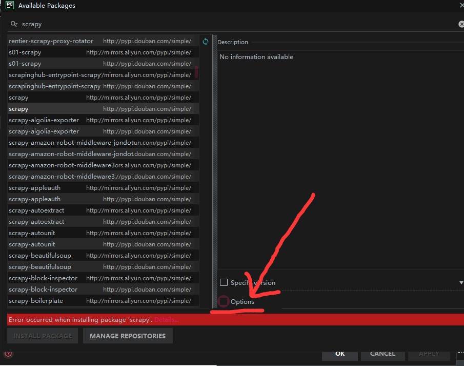 pycharm The repository located at pypi.douban.com is not a trusted or secure