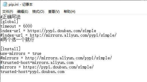 解决办法 :新建pip文件夹 -->新建文件 pip.ini