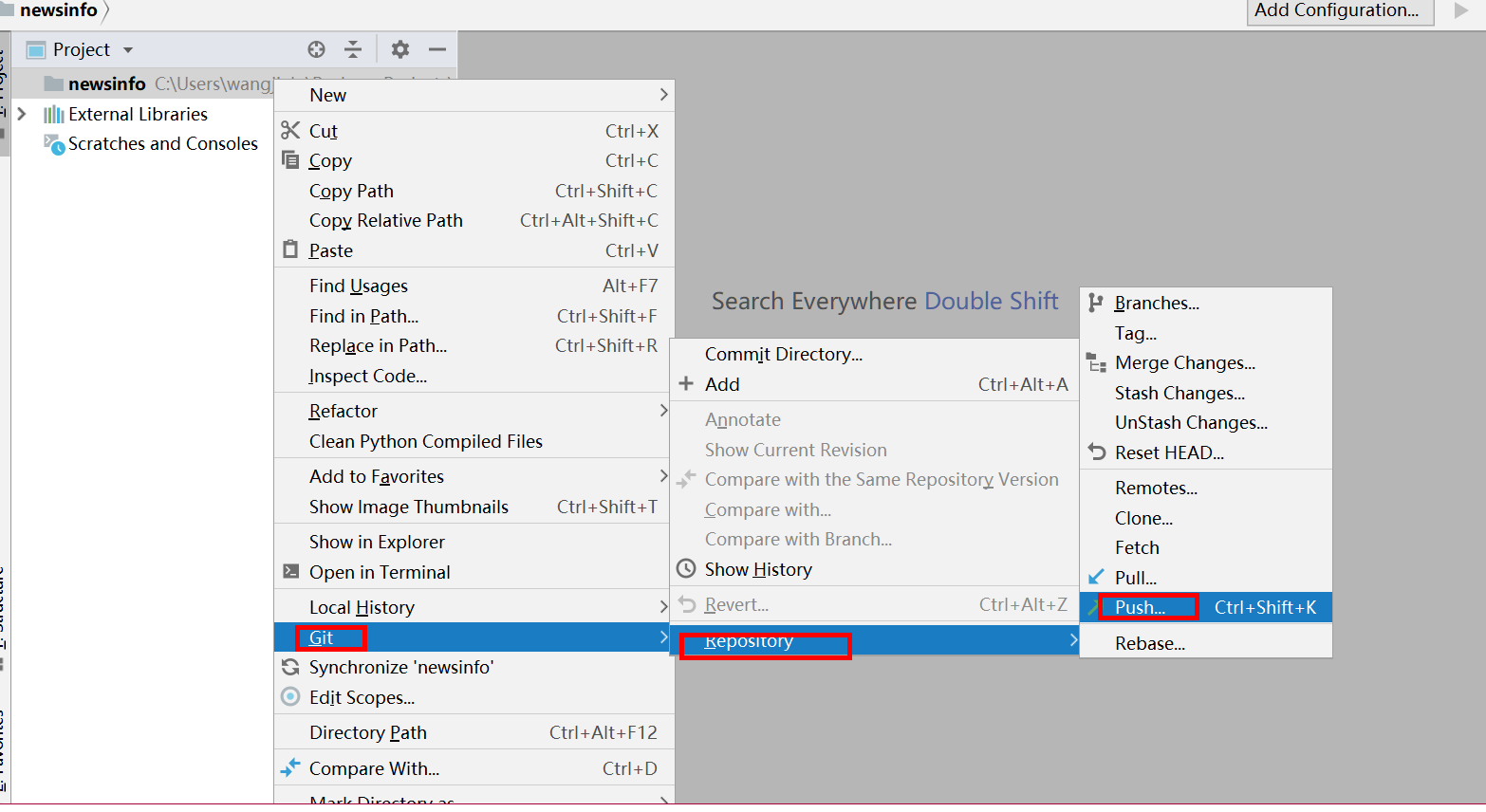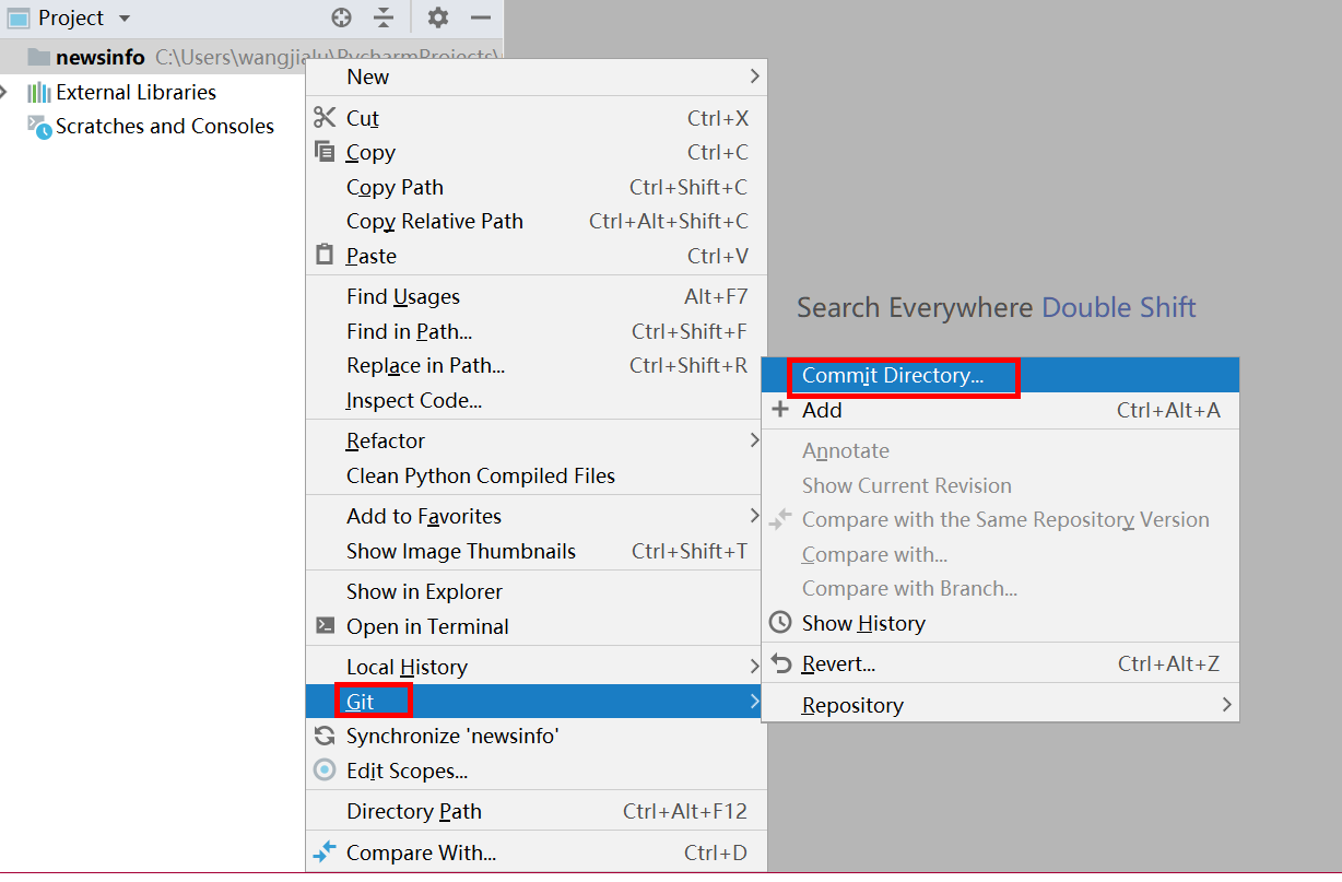 》》好了之后打开pycharm文件夹找到刚建好的库 并打开open 先提交项目