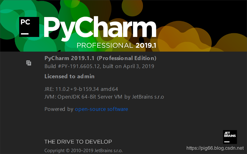 查看有效期的步骤为点击:Help->About这里可以看到你的pycharm的版本号、许可来源、有效期、以及一些环境