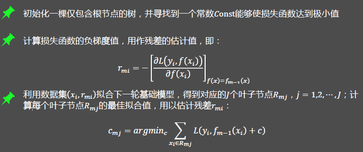 梯度提升算法,是在第𝑚轮基础模型中,利用损失函数的负梯度值作为该轮基础模型损失值的近似,并利用这个近似值构建下一轮基础模型。利用损失函数的负梯度值近似残差的计算就是梯度提升算法在提升算法上的扩展,这样的扩展使得目标函数的求解更为方便。