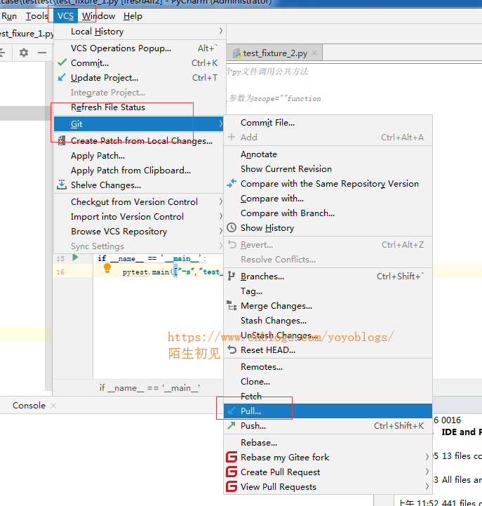 操作路径:pycharm-VCS-Git-Pull
