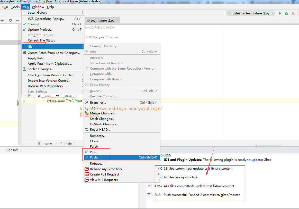 3)操作路径:pycharm-VCS-Git-Push,这样就成功了