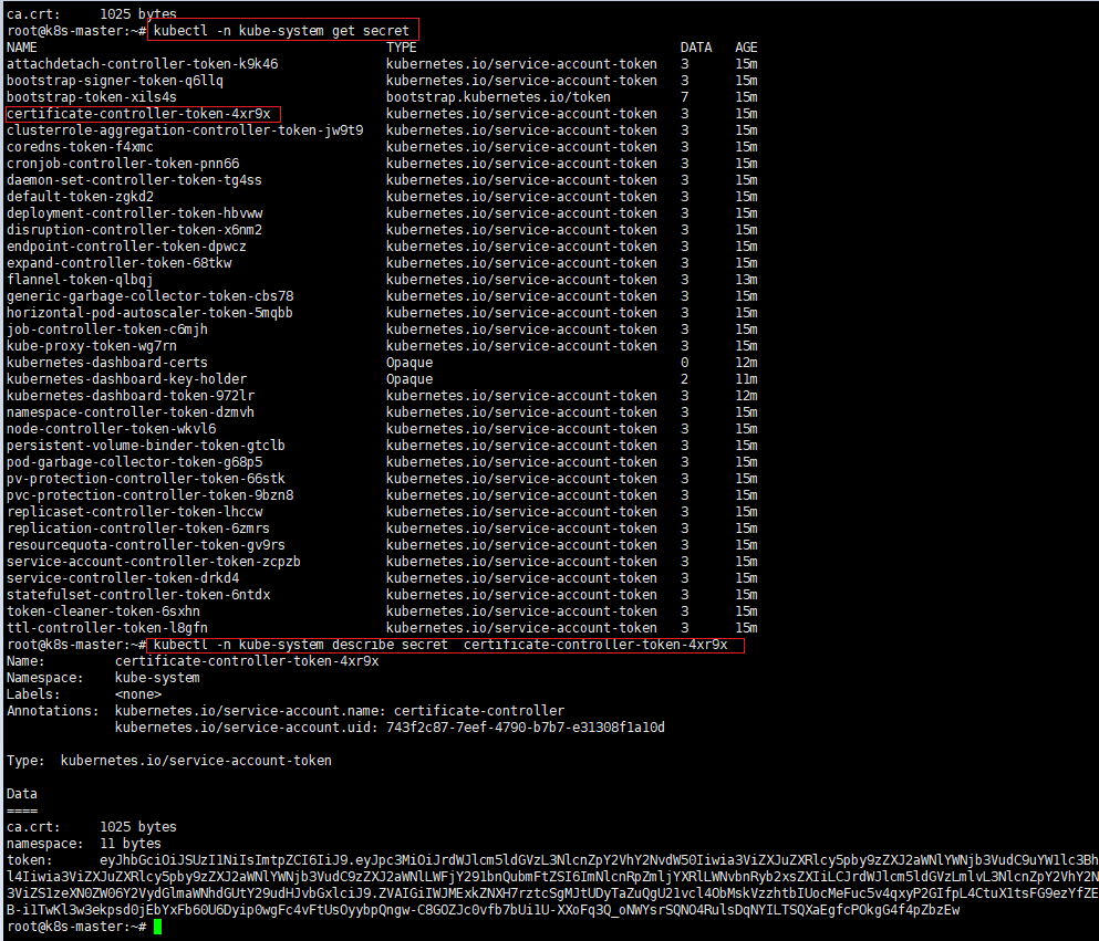 kubectl -n kube-system describe secret certificate-controller-token-4xr9x