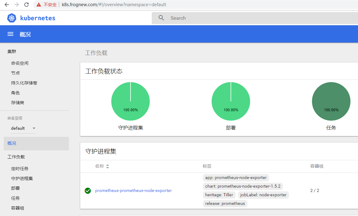 nginx ingress controller的副本数replicaCount为1,将被调度到k8s-master这个边缘节点上。这里并没有指定nginx ingress controller service的externalIPs,而是通过hostNetwork: true设置nginx ingress controller使用宿主机网络。