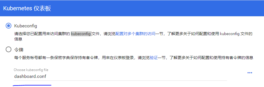 上面我们使用token来登录, 这里我们还是用上面的dashboard账号来生成kubeconfig文件,以后用生成kubeconfig文件来登录