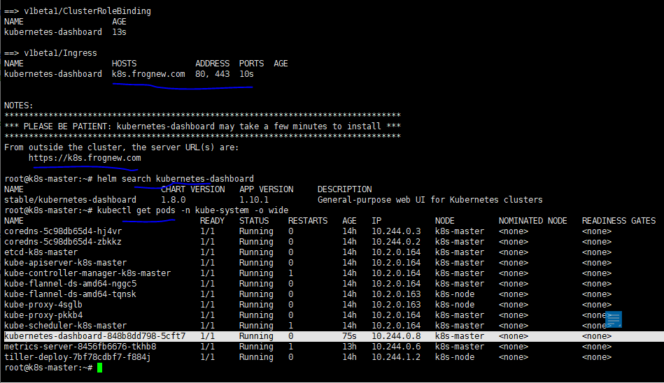 helm install stable/kubernetes-dashboard -n kubernetes-dashboard --namespace kube-system -f kubernetes-dashboard.yaml
