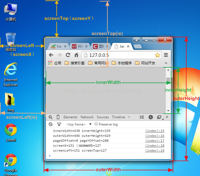 js中clientWidth, scrollWidth, innerWidth, outerWidth,offsetWidth的属性汇总,测试浏览器:ie7~ie11、chrome 和 firefox等。