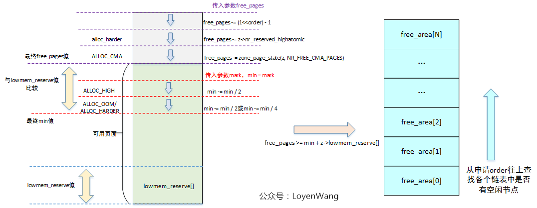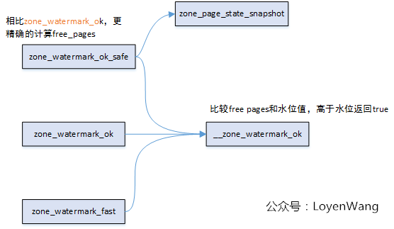 __zone_watermark_ok:watermark判断的关键函数,从图中的调用关系可以看出,最终的处理都是通过它来完成判断的。还是用图片来说明整体逻辑吧: