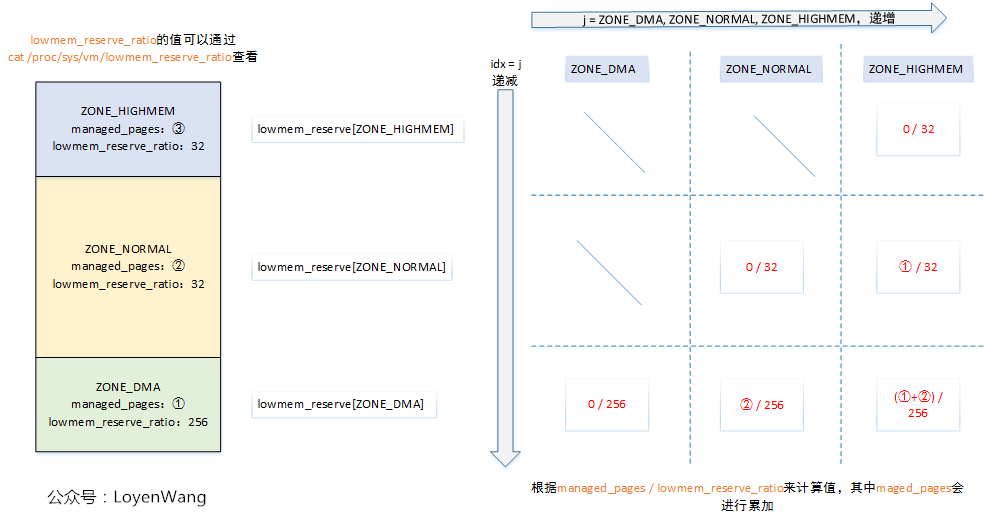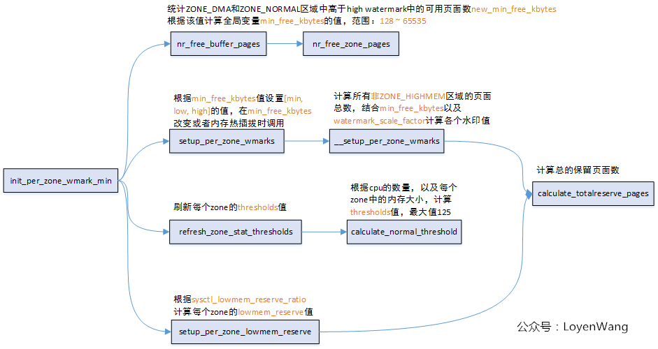 setup_per_zone_lowmem_reserve: 设置每个zone的lowmem_reserve大小,代码中的实现逻辑如下图所示。